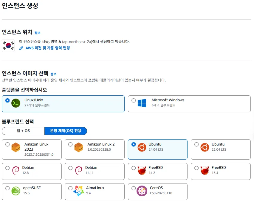 - 앱 + OS: Ubuntu 선택