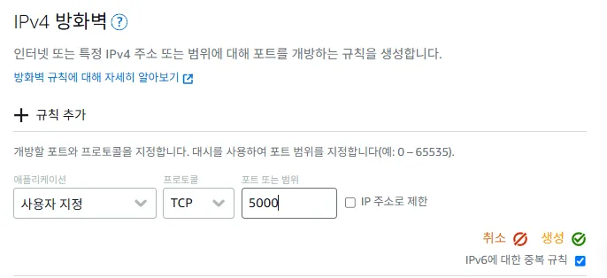 - 인스턴스 > 네트워킹 > 방화벽 규칙에 Custom TCP 5000 포트 추가
