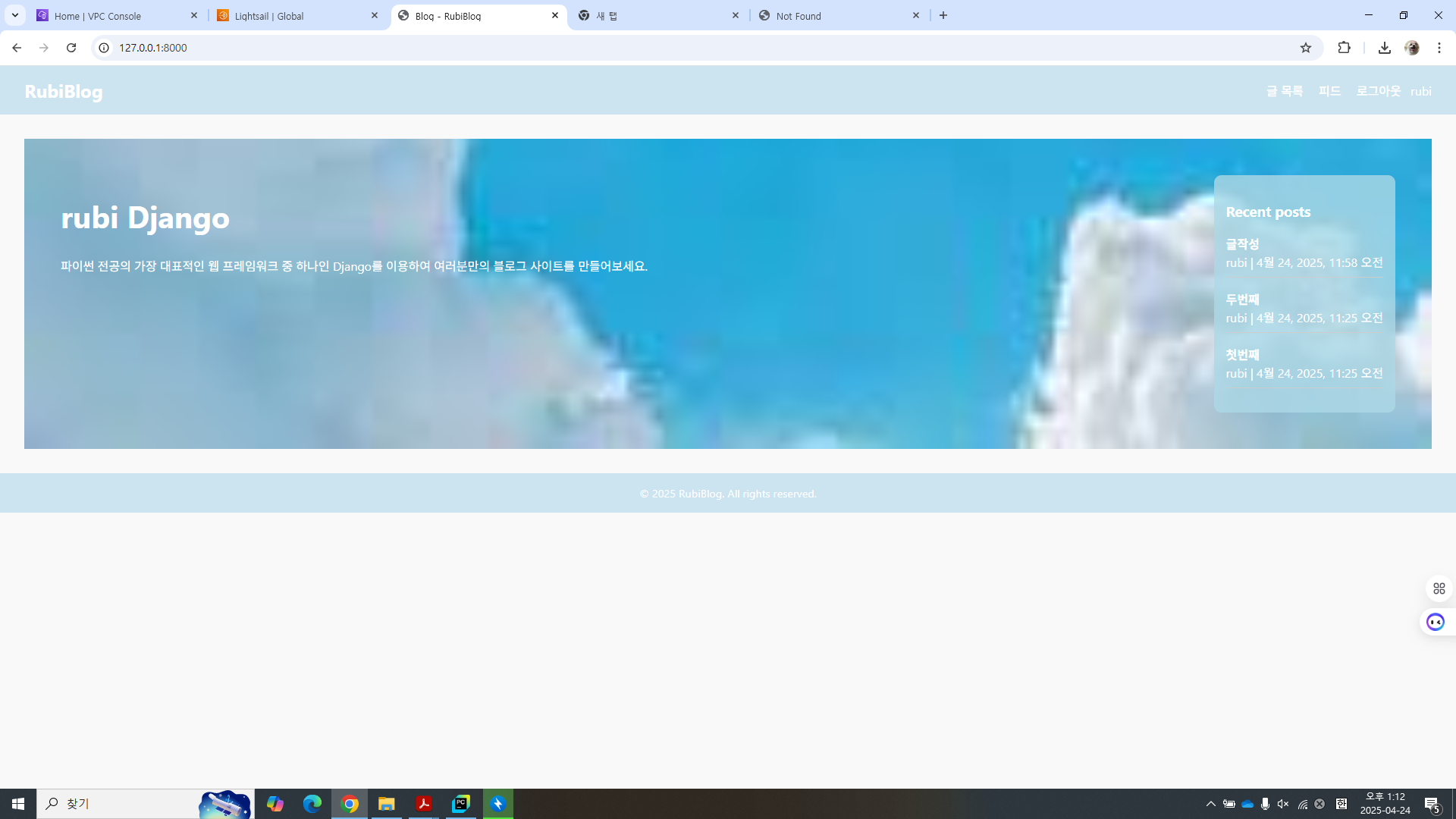 [4월 4주차-4/24]RubiBlog: Django + Amazon Lightsail 배포기Why Not SW CAMP 5기/수업 기록 2025. 4. 24. 13:13